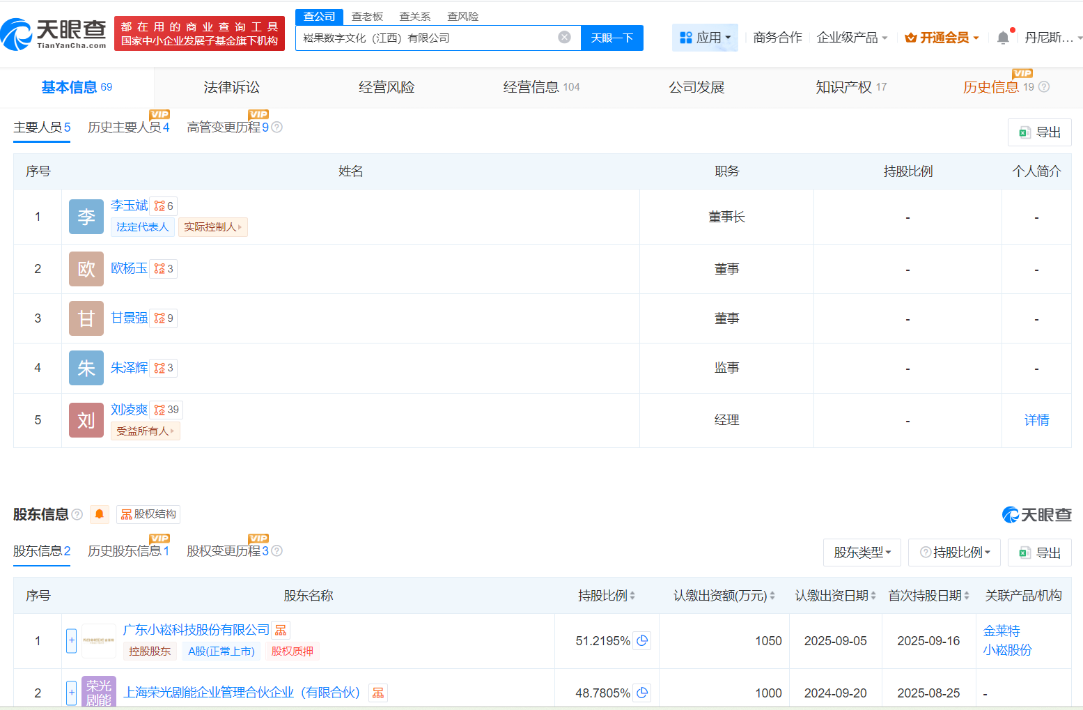 崧果数字文化(江西)有限公司曾用名为华阳数字文化 (江西) 有限公司(以下简称“华阳数字”),由华阳海外(002949.SZ)出资1000万元于2024年建立,本体限度东说念主为李玉斌,刘凌爽在公司任司理一职。公司主营包括数字内容制作工作等。本年8月25日,华阳数字改名为崧果数字。9月20日,华阳海外退出,小崧股份和上海荣光剧能差异出资1050万元、1000万元,握股51.22%、48.78%。