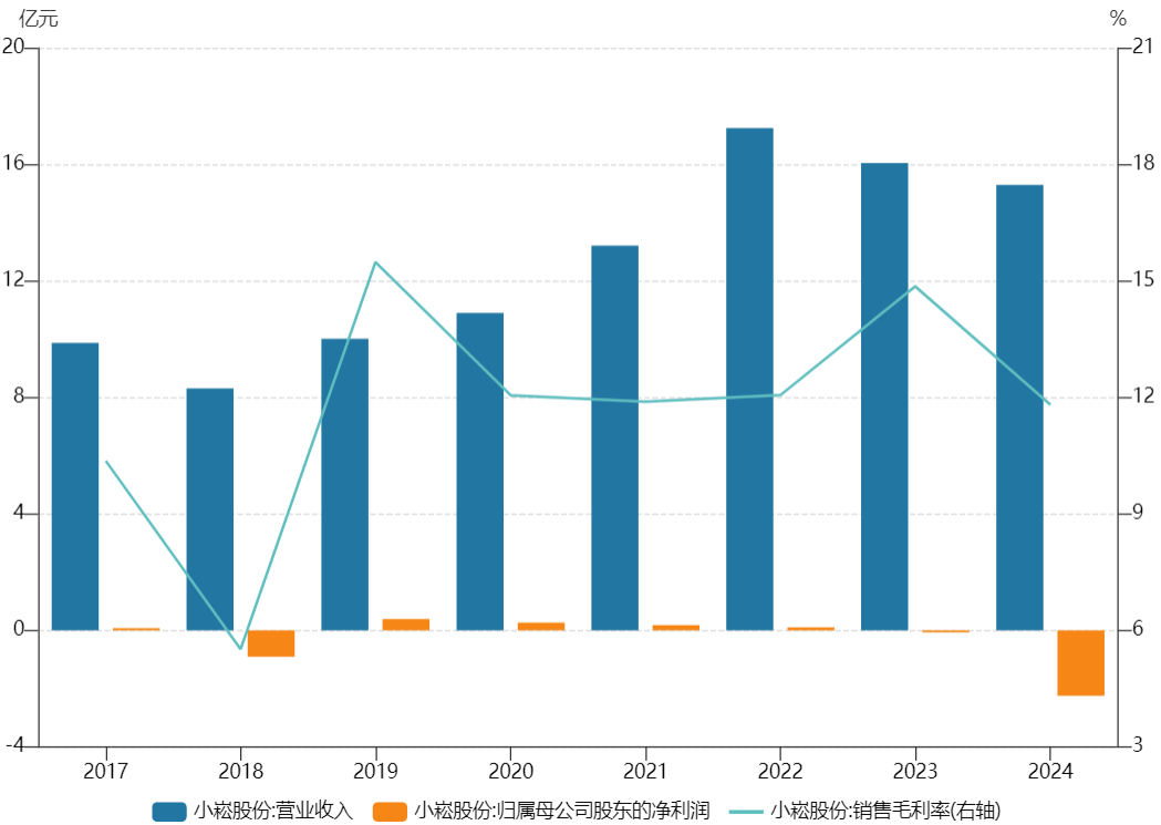 蔡小如接办上市公司后,小崧股份的主业认识进行了屡次转型。2019年,公司“小家电+工程施工”双主业发展,干预多半资源进入建筑工程边界;2020年后又布局电子烟、健康光、热泵等赛说念,累计干预超2亿元,但均产出甚微,进一步拉低举座盈利水平。