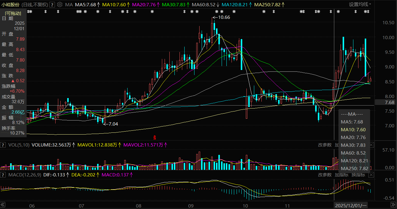 上述资产处分交往公告后,小崧股份股价波动下落。